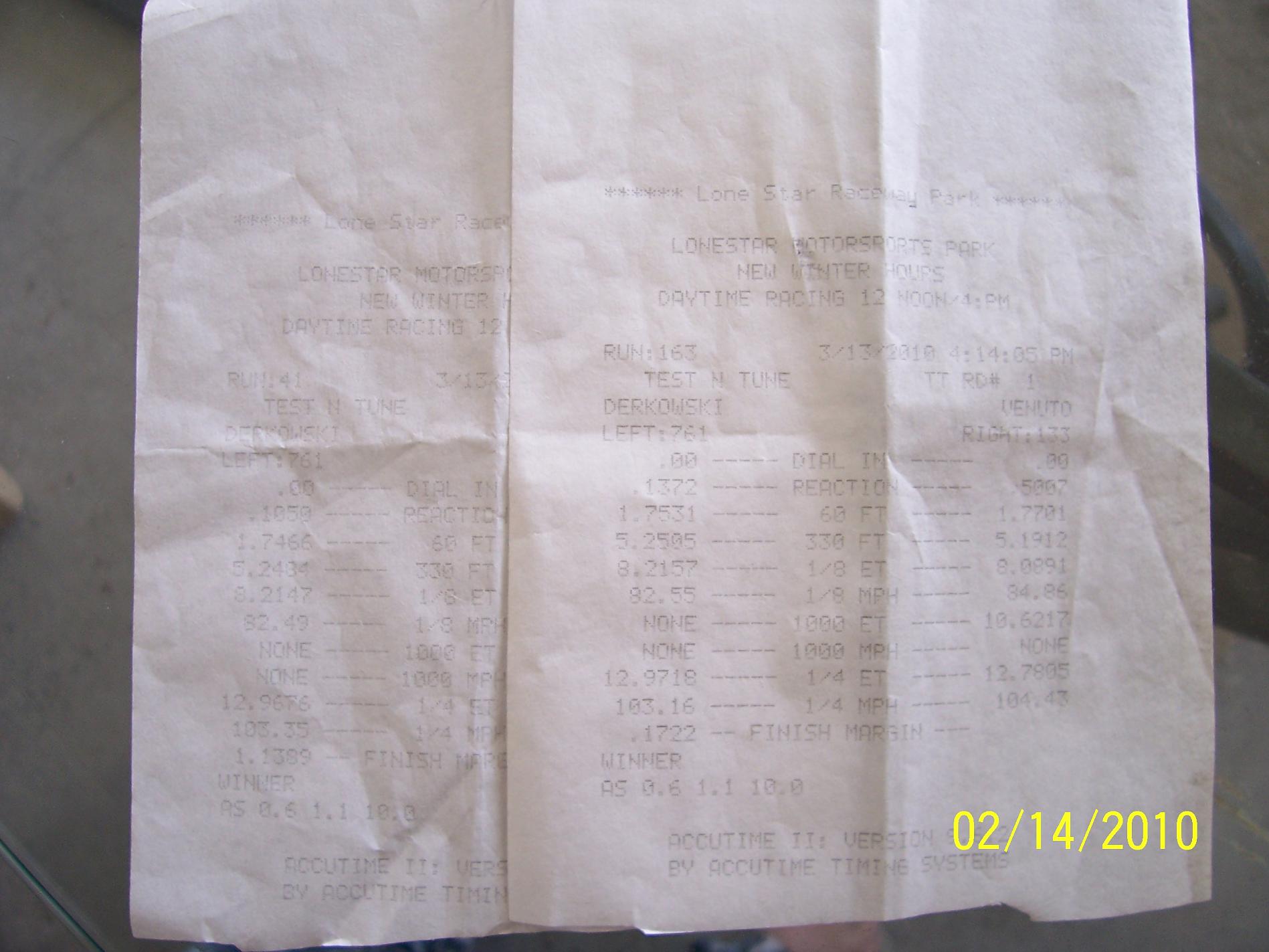 Here's my 12.96 and 12.97 slips. NA 5.7 Cam bolton QC. these passes were with stock heads.